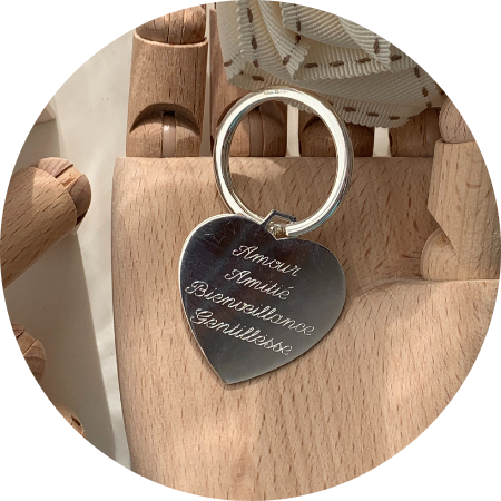 Vous souhaitez offrir un cadeau d'anniversaire unique ? Ou pourquoi ne pas lui offrir une breloque demi-cœur gravée de mots doux ? Notre atelier s'adapte à toutes les demandes de personnalisation.