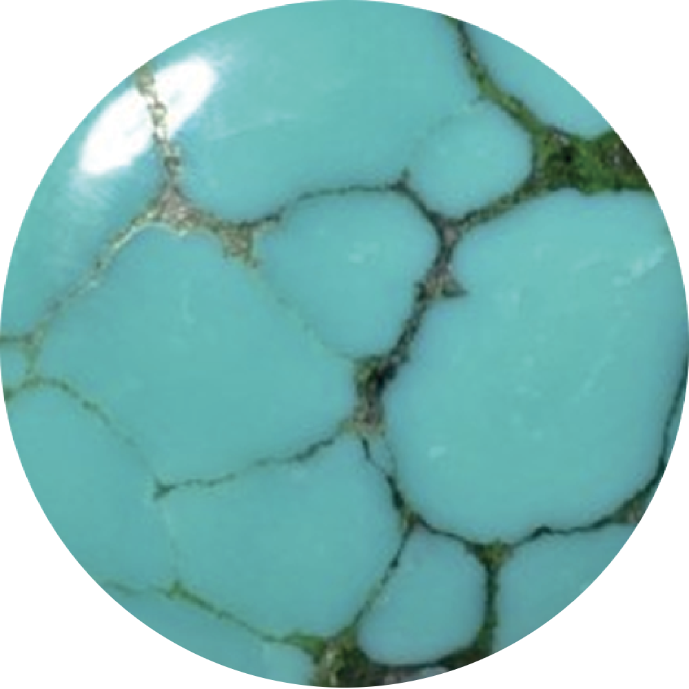 Turkoois is een unieke en altijd andere steen. Variërend van blauw tot groen, lijkt deze steen nooit op zijn buurman. Dit verschil in kleur wordt verklaard door de hoeveelheid koper die het bevat. Meer technisch gezien is het een ondoorzichtige minerale soort die bestaat uit fosfaat gehydrateerd koper en aluminium, waardoor het zijn blauwe kleur krijgt. De groene kleur die het soms heeft, is het resultaat van ijzerverontreinigingen die aluminium vervangen. Hoe meer koper de steen bevat, hoe blauwer hij zal zijn en vice versa.