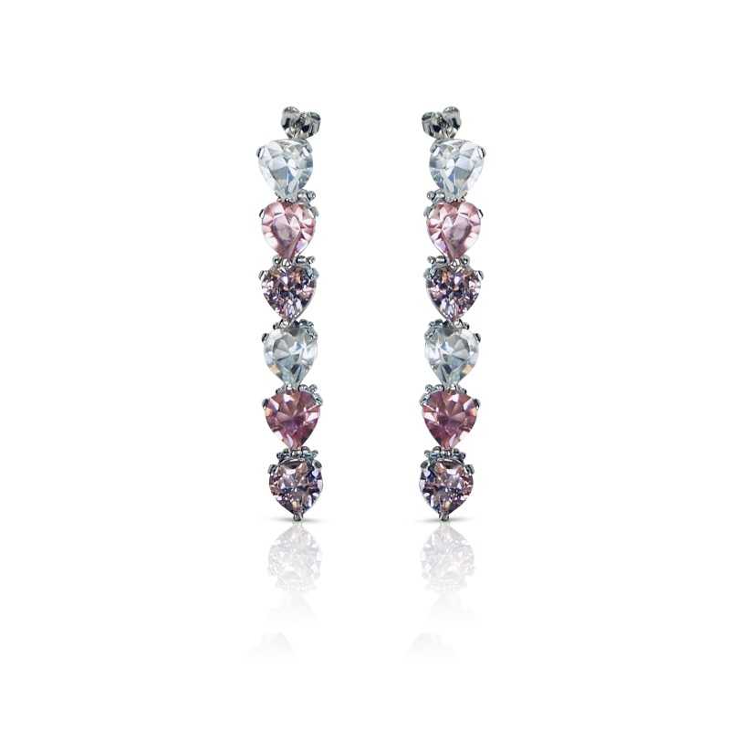 The pink Swarovski crystal earrings for women are high-quality jewelry. The manufacture of Swarovski crystals is done from glass with a high lead content. This gives them exceptional shine and sparkling beauty. These shiny rhinestones are available in several shapes, sizes and colors. Our jeweler Art'emi then used them to create a brand new collection of jewelry that you can find in the store. You can choose between three colours: pink, purple and orange. You can find in these three ornaments a necklace, a bracelet, earrings, but also brooches of several shapes. Choose the brooch you like best from the moon, flower, heart, and butterfly.