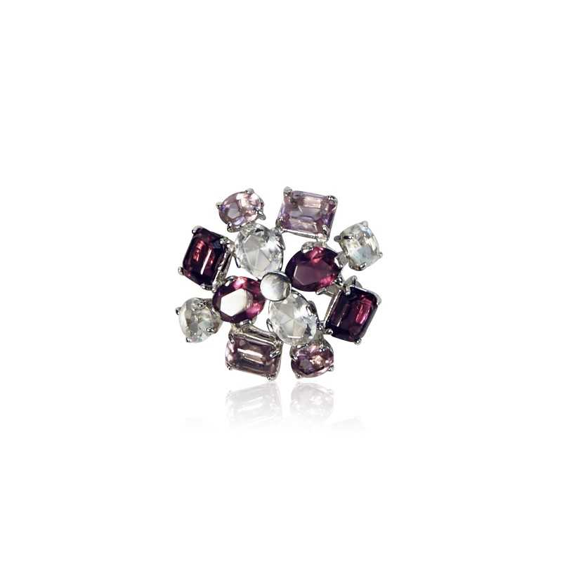 Laissez-vous séduire par l’élégance intemporelle de notre broche en argent. Cette pièce incarne le mariage entre la délicatesse des pierres fines et le raffinement de l’argent massif. En effet, cette broche avec son fermoir en argent est sertie de cristaux Swarovski bicolores d’un mauve envoûtant et de cristal translucide. De plus, ces pierres semi-précieuses en forme de cœur, de goutte, ronde et de forme émeraude captent la lumière de manière magistrale. Que vous la portiez sur un chemisier ou une écharpe en soie, cette broche rehaussera ainsi instantanément votre look d’une touche de féminité.