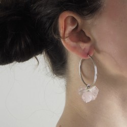 La bijouterie bruxelloise art'emi vous propose des bijoux de qualité fabriqués à partir de matériaux sensationnels. Les boucles oreilles créoles roses sont confectionnées à partir d'argent, de quartz et de nacre.
